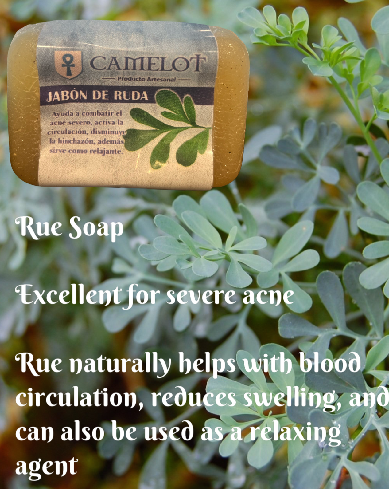Introducing our all-natural Rue Soap, a powerful solution for severe acne and more. This soap harnesses the natural properties of rue to combat acne, improve blood circulation, reduce swelling, and even provide a relaxing experience. Experience the natural remedy that tackles acne while promoting overall skin health with our Rue Soap.